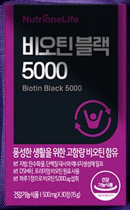 뉴트리원 비오틴 블랙 5000은 5000ug의 고함량 비오틴을 함유하여 머리카락, 피부, 손톱 건강을 위한 프리미엄 영양제라고 합니다. 이 제품은 머리카락, 피부, 손톱 건강을 유지하는데 도움을 주는 건강기능식품입니다.