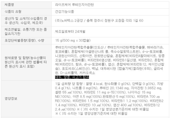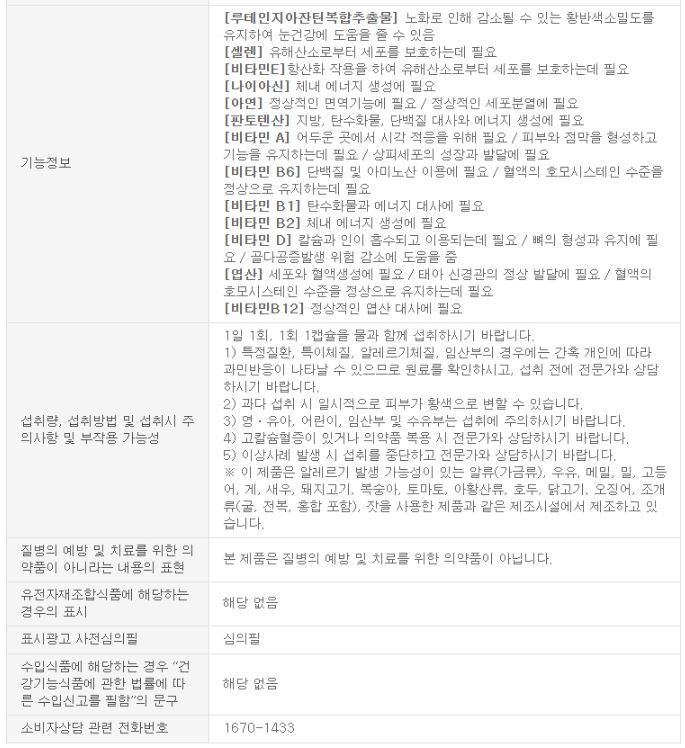 라이프케어 루테인지아잔틴 권장량 및 주의사항