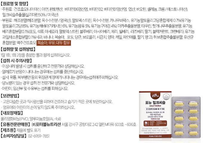 포뉴 밀크씨슬 권장량 및 주의사항에 대해서 알아보겠습니다.