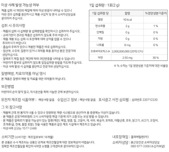 - 질병의 예방 및 피료를 위한 의약품이 아닌 건강기능식품입니다.