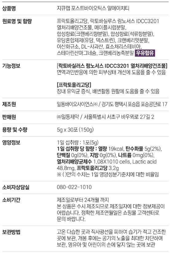 지큐랩 포스트바이오틱스 알에이치티 권장량 및 주의사항