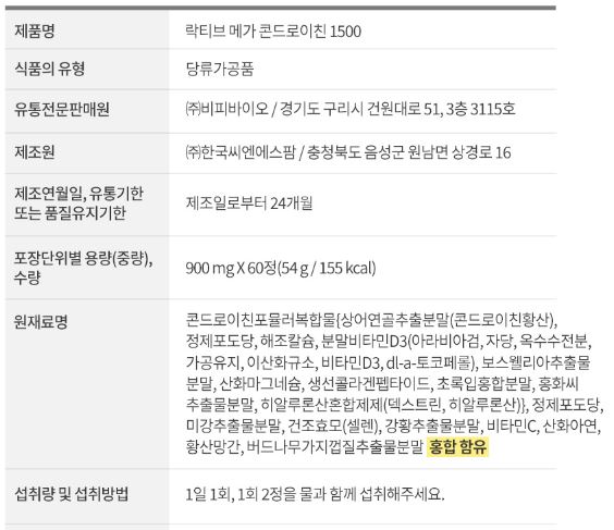 락티브 메가 콘드로이친 1500 권장량 및 주의사항