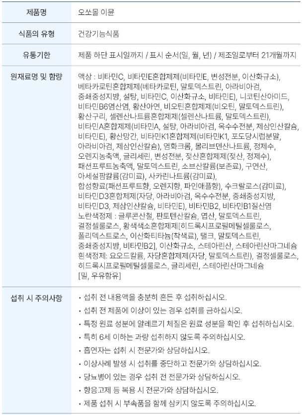 - 섭취 전 제품에 이상이 있는 경우 섭취를 금하십시오.
